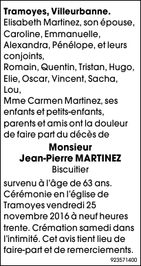 Décédé à Caluire-et-Cuire (69300, France) le dimanche 20 novembre 2016 à l'âge de 63 ans