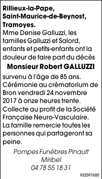 Décédé à Lyon (69003, France) le lundi 13 novembre 2017 à l'âge de 85 ans