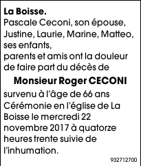 Décédé à La Boisse (01120, France) le samedi 18 novembre 2017 à l'âge de 66 ans