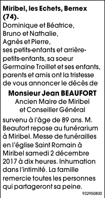 Décédé à Miribel (01700, France) le lundi 27 novembre 2017 à l'âge de 89 ans