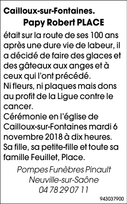 Décédé à Cailloux-sur-Fontaines (69270, France) le mardi 30 octobre 2018 à l'âge de 99 ans