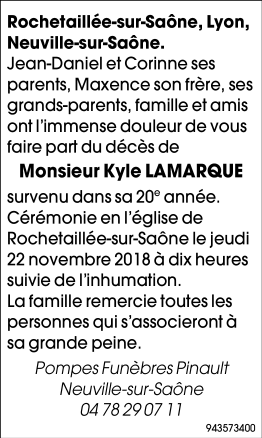 Décédé à Fleurieu-sur-Saône (69250, France) le jeudi 15 novembre 2018 à l'âge de 19 ans