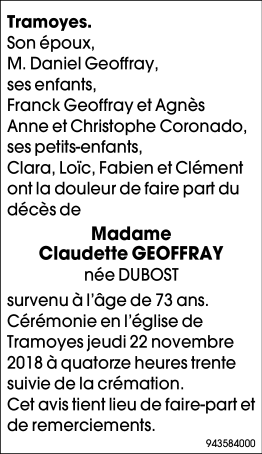 Décédée à Bron (69500, France) le vendredi 16 novembre 2018 à l'âge de 73 ans
