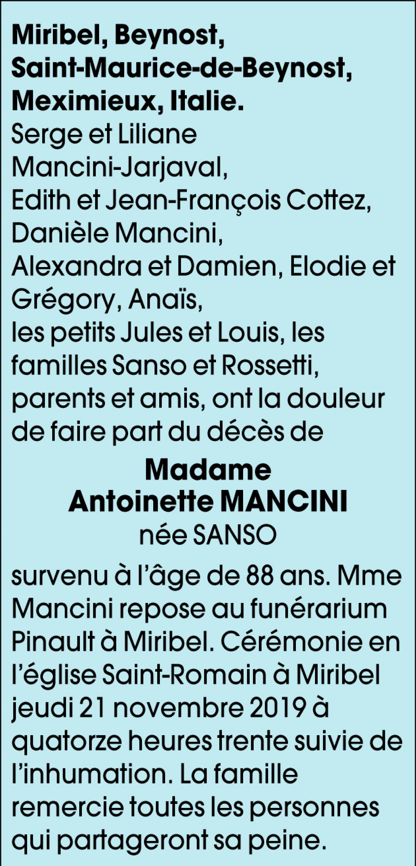 Décédée à Villeurbanne (69100, France) le lundi 18 novembre 2019 à l'âge de 88 ans