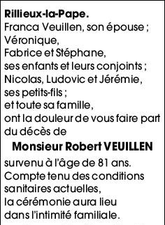 Décédé à Rillieux-la-Pape (69140, France) le vendredi 13 novembre 2020 à l'âge de 81 ans