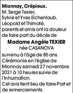 Décédée à Mionnay (01390, France) le dimanche 21 novembre 2021 à l'âge de 85 ans