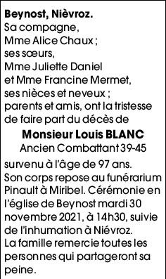 Décédé à Villeurbanne (69100, France) le vendredi 26 novembre 2021 à l'âge de 97 ans
