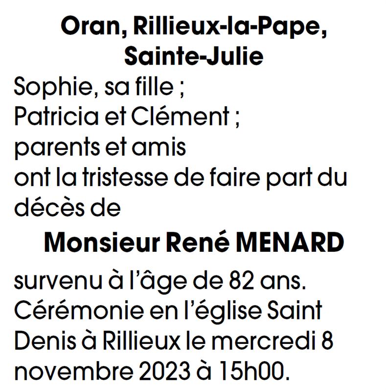 Décédé à Tenay (01230, France) le mercredi 1 novembre 2023 à l'âge de 82 ans