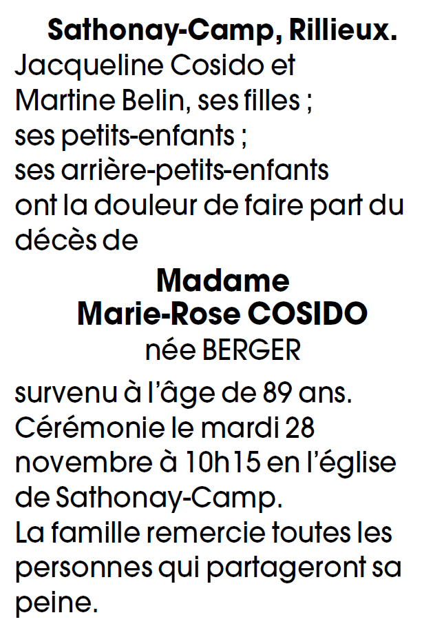 Décédée à Rillieux-la-Pape (69140, France) le mercredi 22 novembre 2023 à l'âge de 89 ans