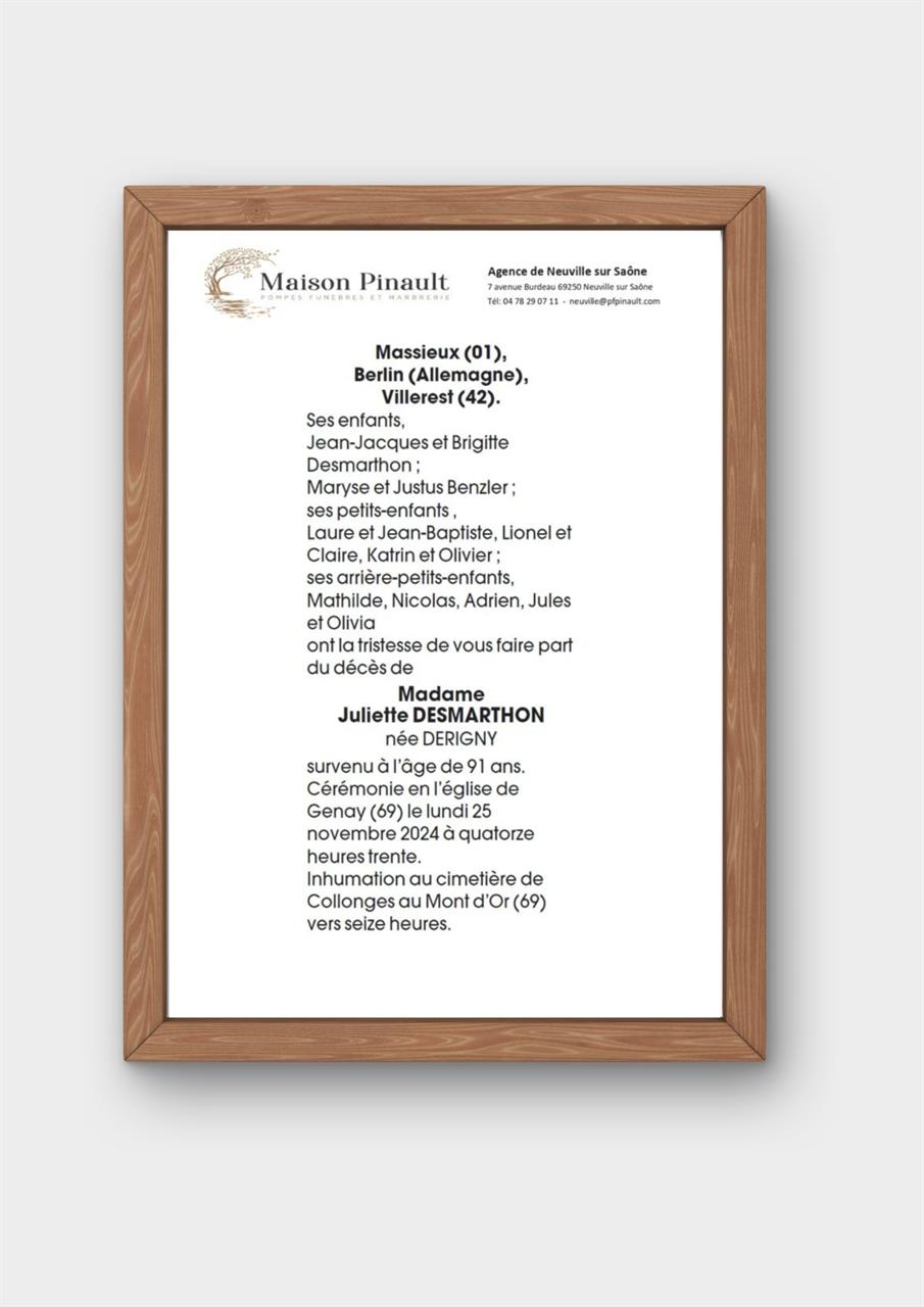 Décédée à Trévoux (01600, France) le mardi 19 novembre 2024 à l'âge de 91 ans
