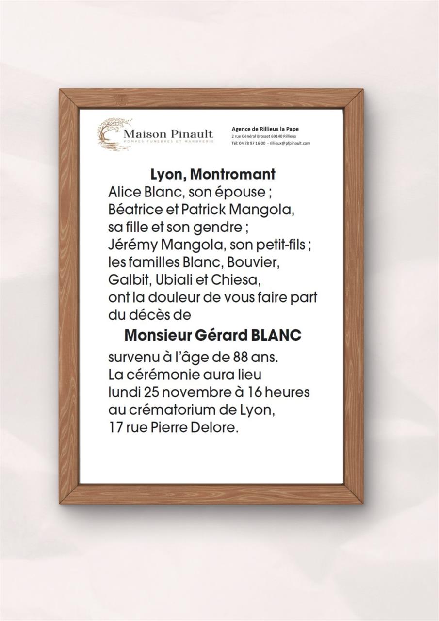 Décédé à Lyon (69005, France) le mercredi 20 novembre 2024 à l'âge de 88 ans