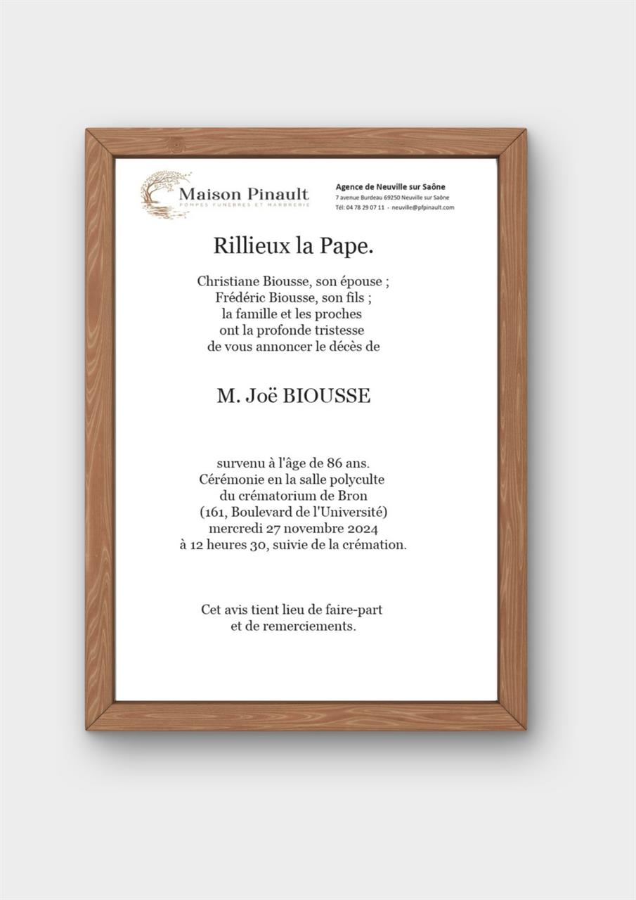 Décédé à Albigny-sur-Saône (69250, France) le vendredi 22 novembre 2024 à l'âge de 86 ans