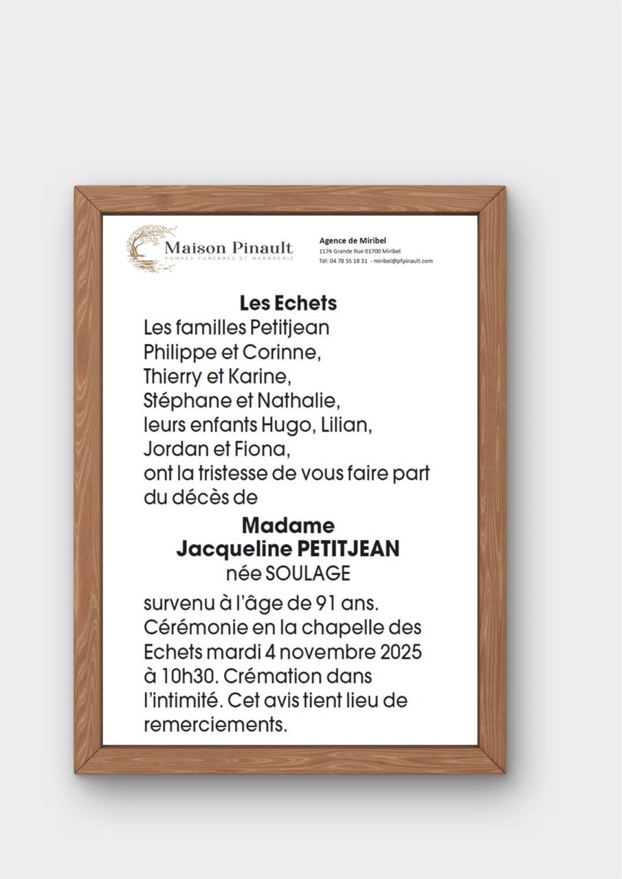 Madame Jacqueline PETITJEAN née SOULAGE