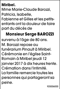 Décédé à Rillieux-la-Pape (69140, France) le dimanche 8 janvier 2017 à l'âge de 80 ans