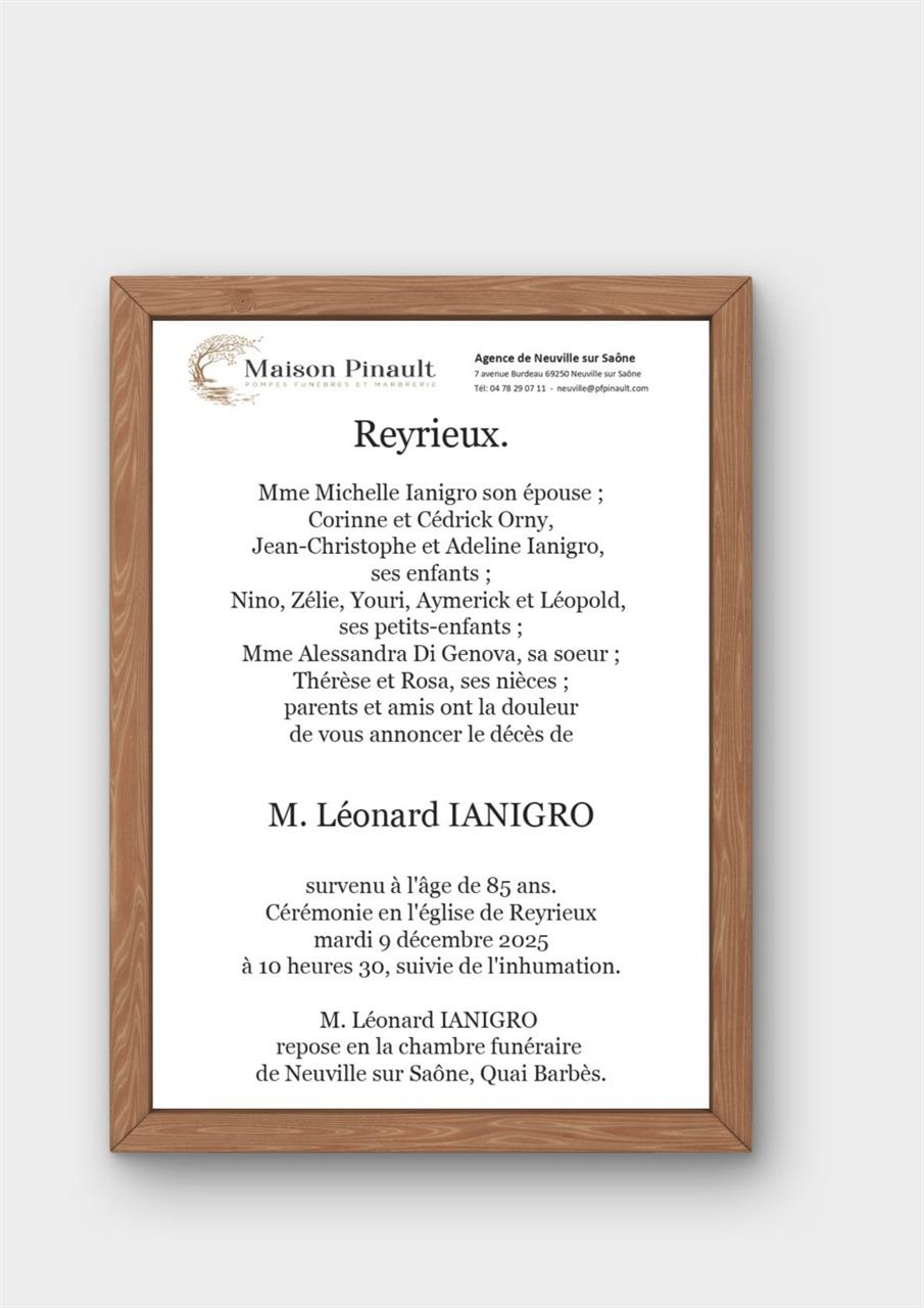 Décédé à Reyrieux (01600, France) le jeudi 4 décembre 2025 à l'âge de 85 ans