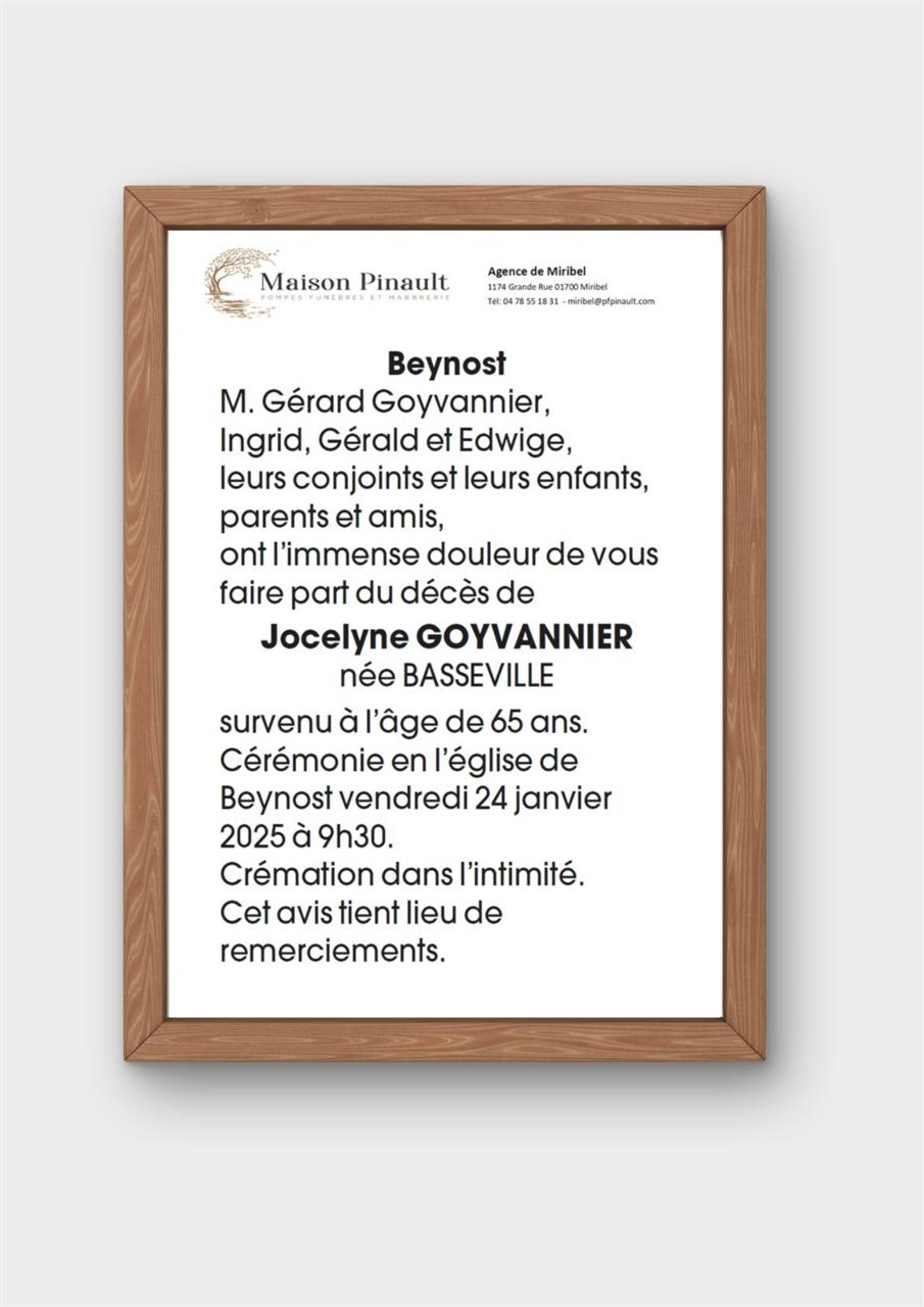 Madame Jocelyne GOYVANNIER née BASSEVILLE