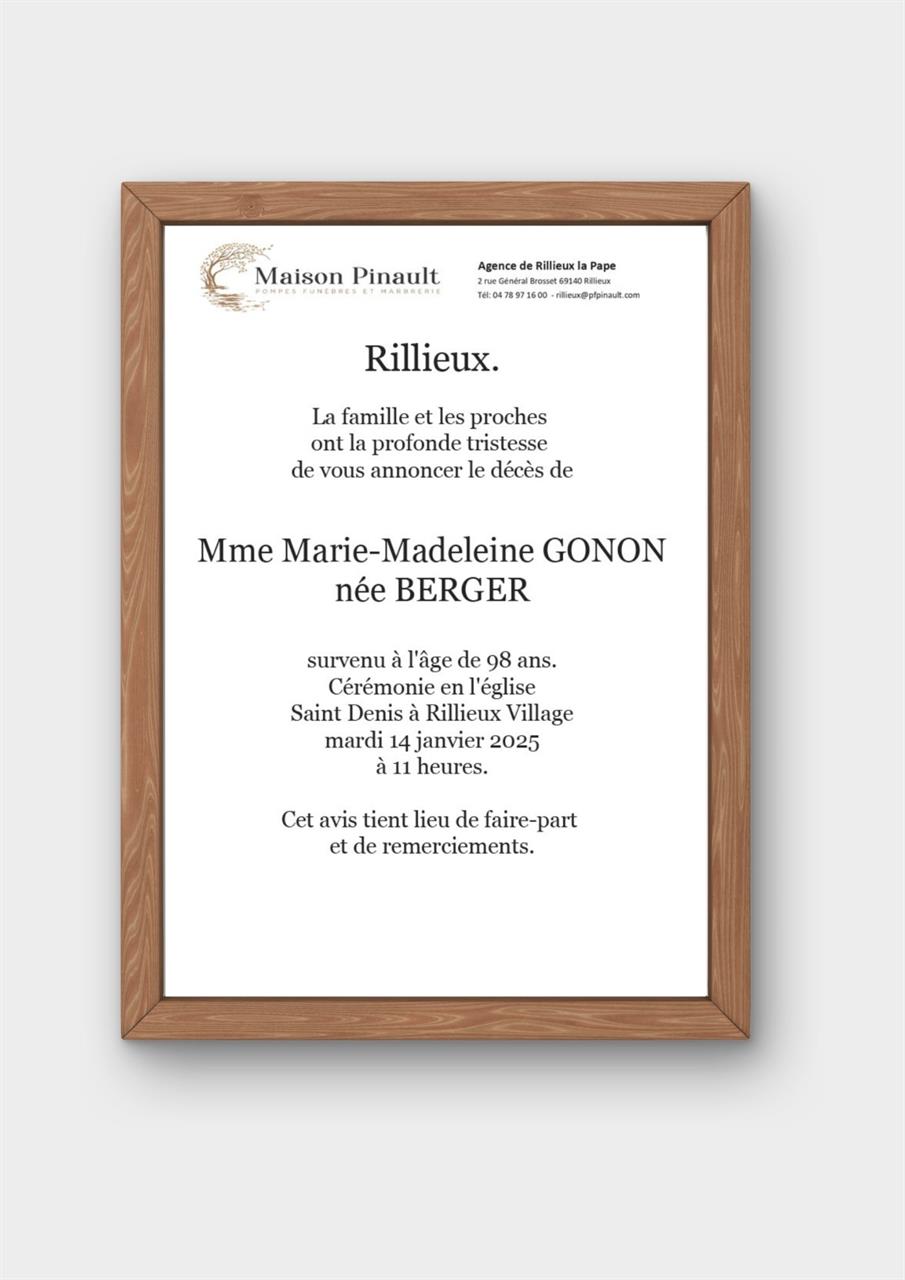 Madame Marie-Madeleine GONON née BERGER