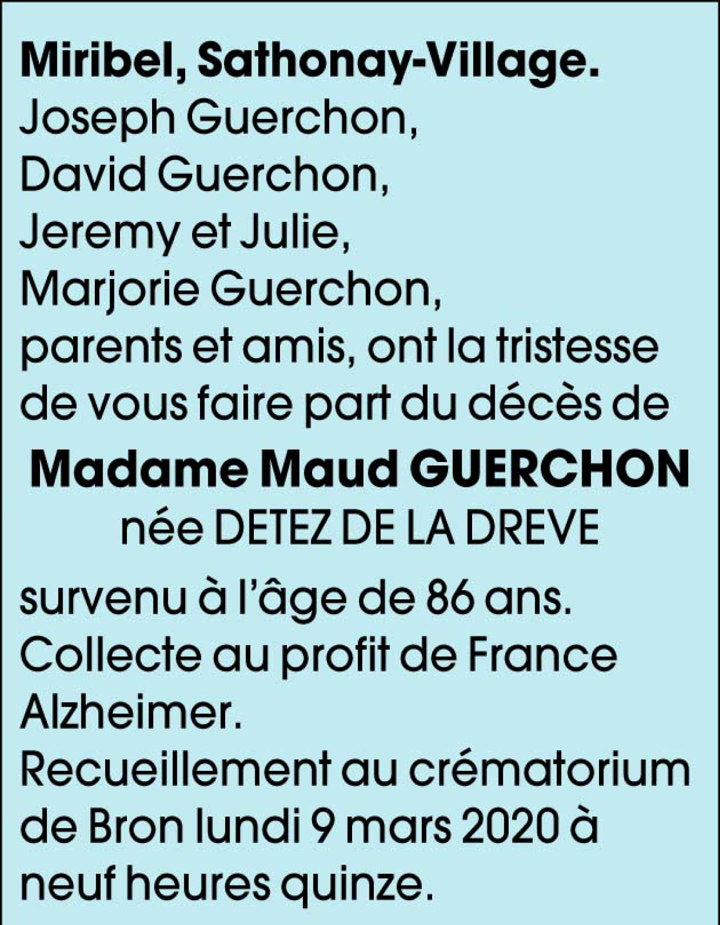 Madame Maud GUERCHON née DETEZ DE LA DREVE