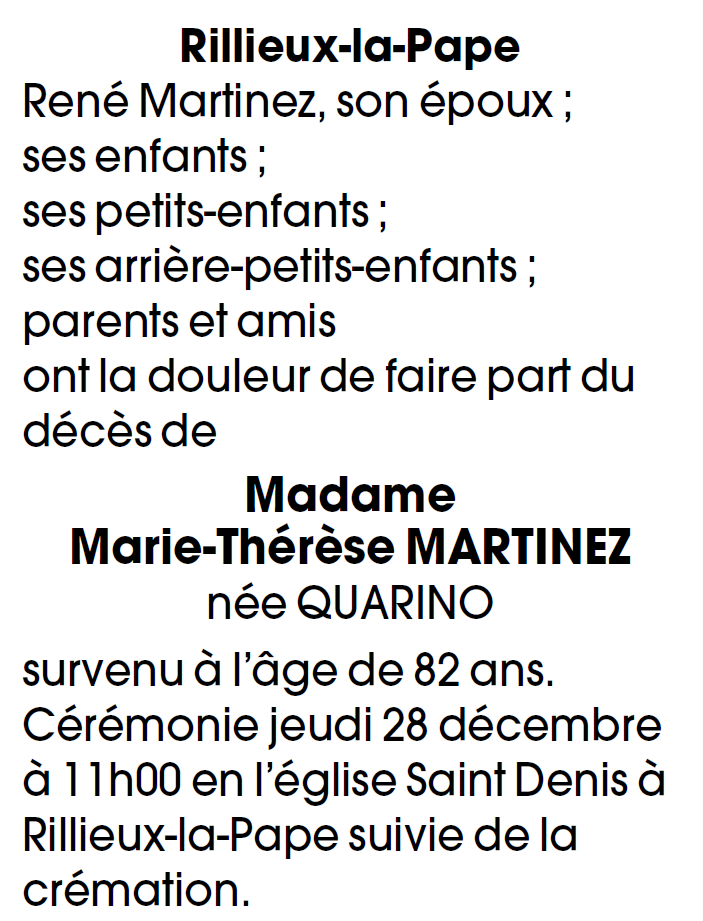 Madame Marie-Thérèse MARTINEZ née QUARINO