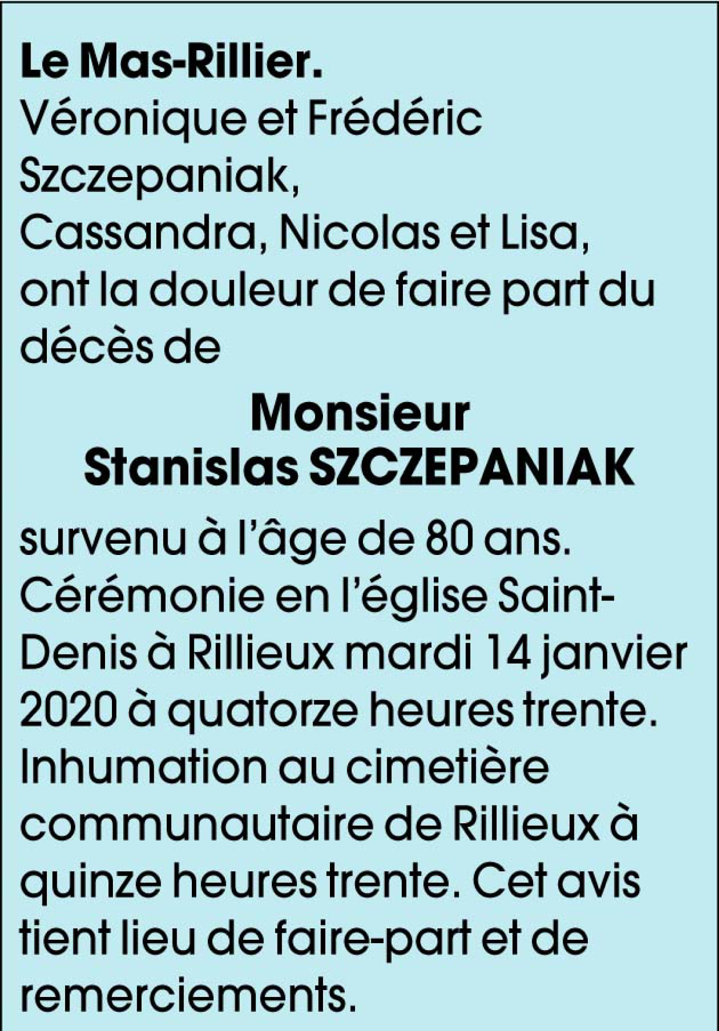 Veuf de Madame Marie Antoinette SZCZEPANIAK