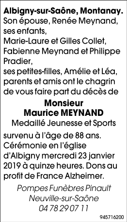 Décédé à Lyon (69004, France) le vendredi 18 janvier 2019 à l'âge de 88 ans