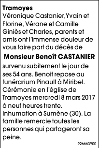 Décédé à Tramoyes (01390, France) le vendredi 3 mars 2017 à l'âge de 54 ans