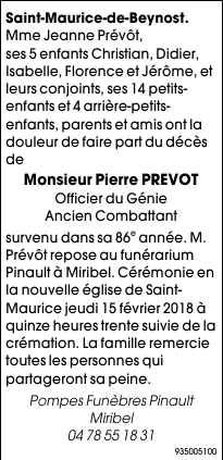 Décédé à Saint-Maurice-de-Beynost (01700, France) le dimanche 11 février 2018 à l'âge de 85 ans