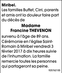 Décédée à Lyon (69003, France) le mardi 31 janvier 2017 à l'âge de 89 ans