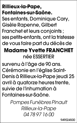 Madame Yvette FRANCHET née ESSERTIER