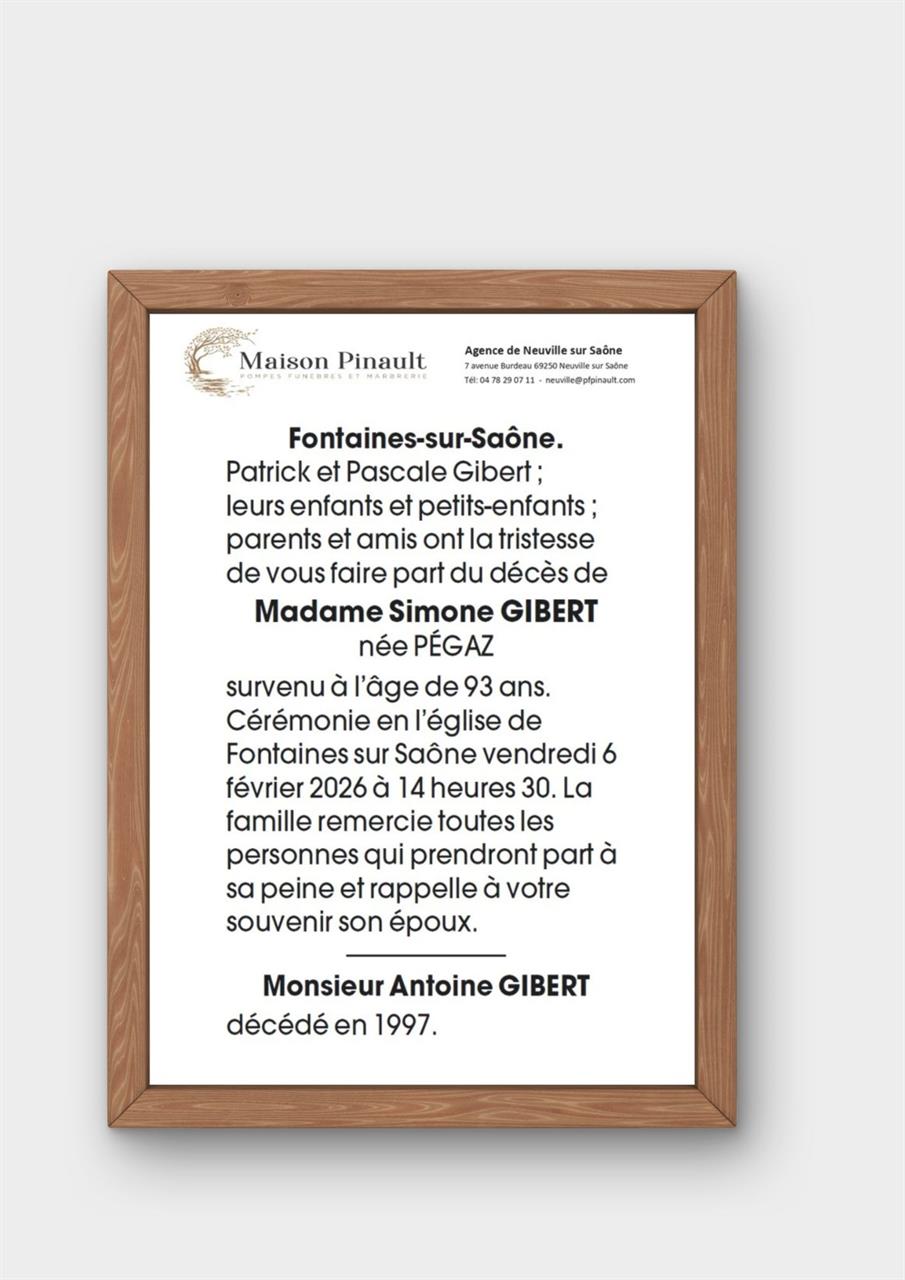 Madame Simone GIBERT née PÉGAZ