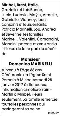 Décédé à Francheville (69340, France) le mercredi 25 janvier 2017 à l'âge de 88 ans