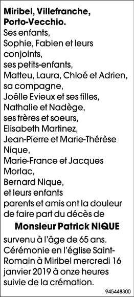 Monsieur Patrick NIQUE