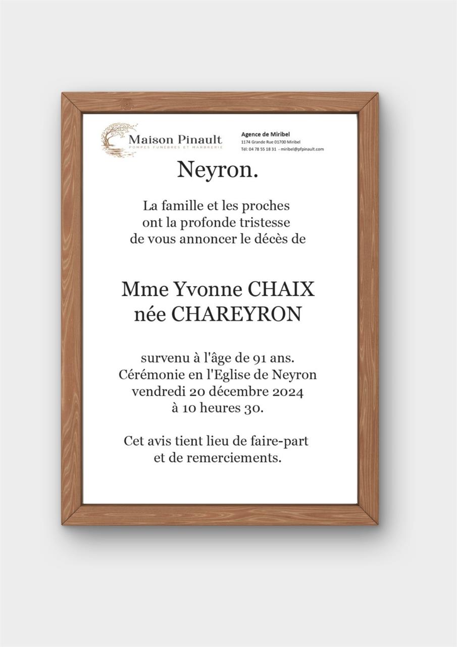Madame Yvonne CHAIX née CHAREYRON