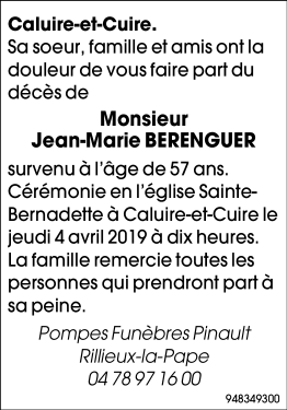 Décédé à Caluire-et-Cuire (69300, France) le vendredi 29 mars 2019 à l'âge de 57 ans