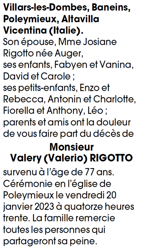 Décédé à Pierre Benite (69310, France) le vendredi 13 janvier 2023 à l'âge de 77 ans