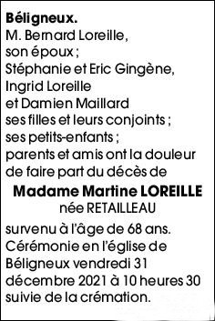 Décédée à Beligneux (01360, France) le samedi 25 décembre 2021 à l'âge de 68 ans