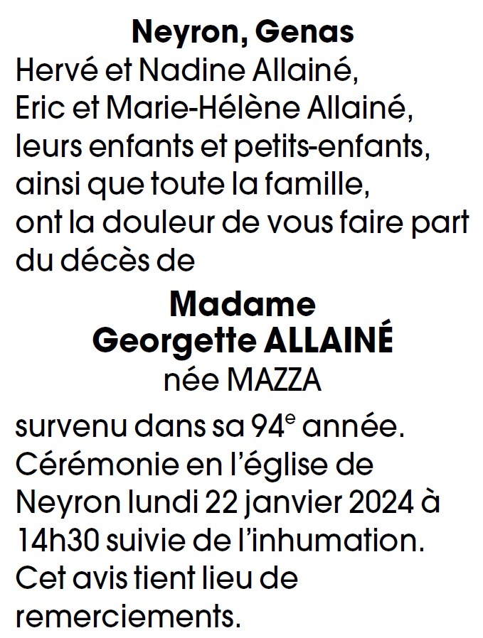 Décédée à Saint-André-de-Corcy (01390, France) le jeudi 18 janvier 2024 à l'âge de 93 ans