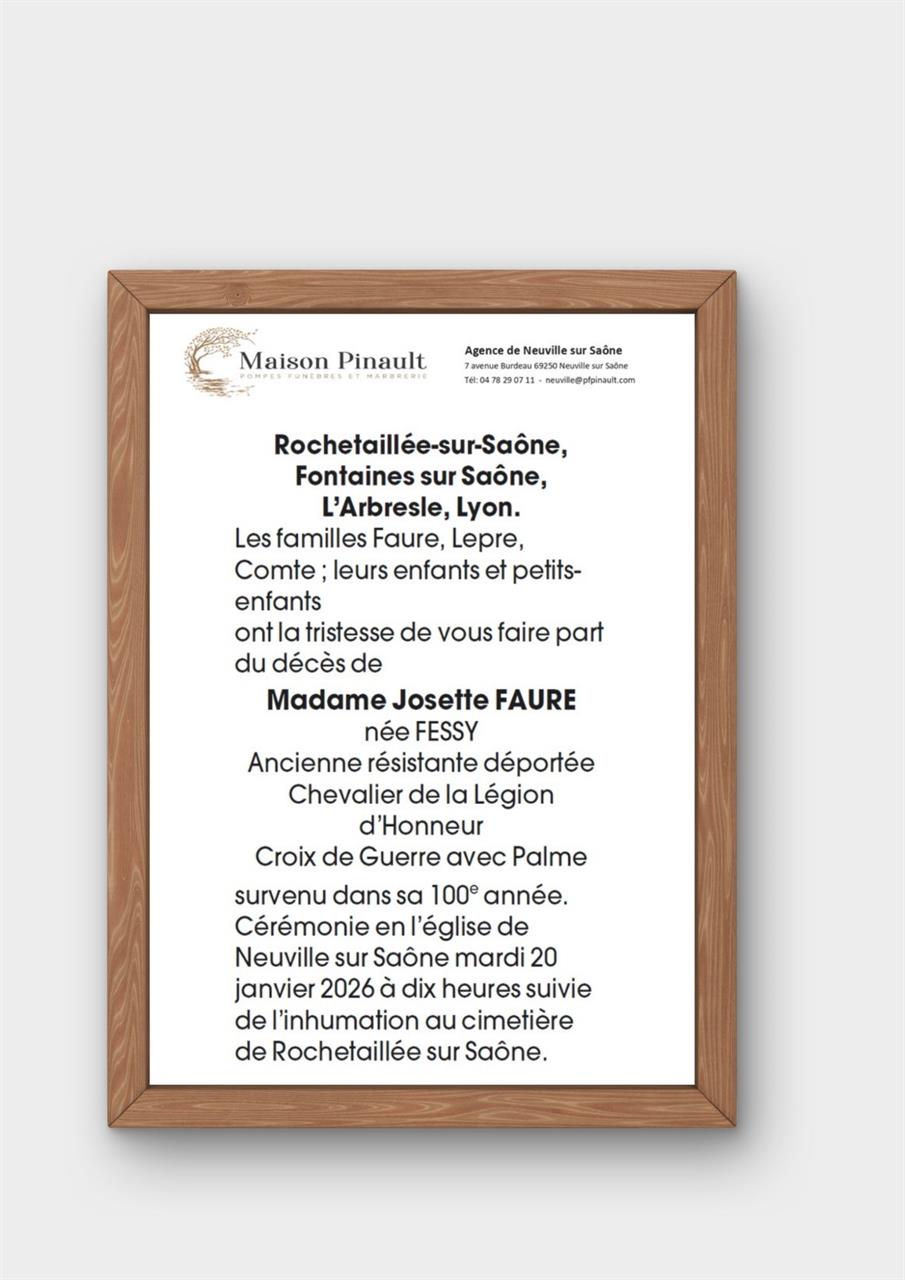 Décédée à Neuville-sur-Saône (69250, France) le samedi 10 janvier 2026 à l'âge de 99 ans