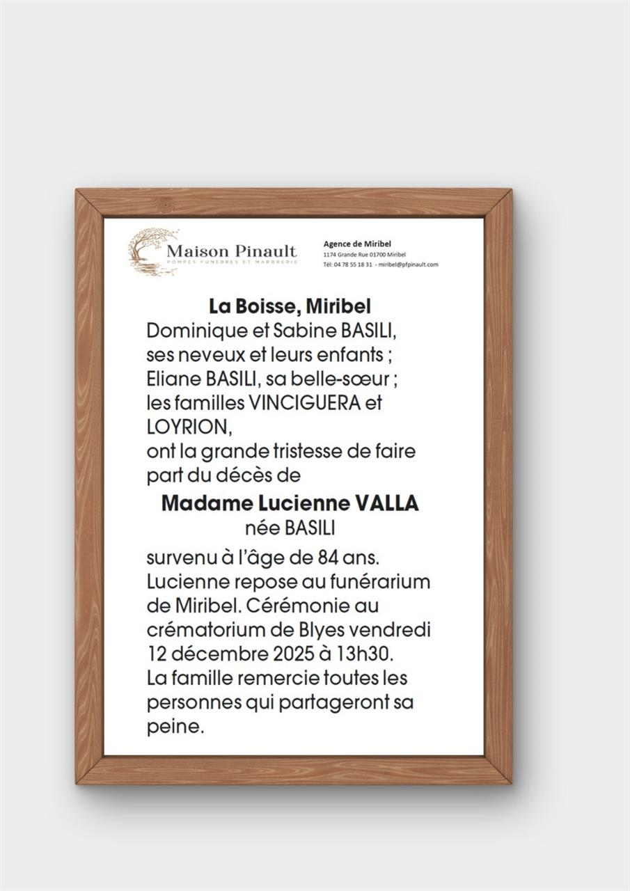 Madame Lucienne VALLA née BASILI