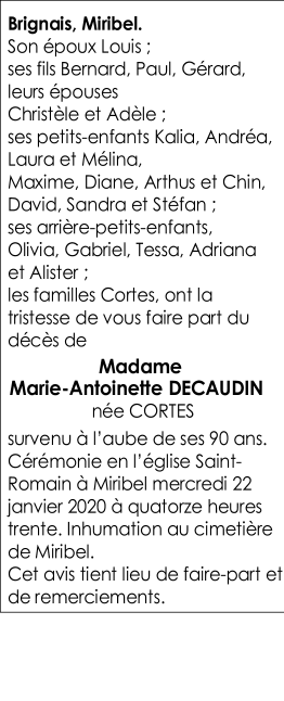 Madame Marie-Antoinette DECAUDIN née CORTES