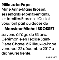 Décédé à Rillieux-la-Pape (69140, France) le lundi 18 décembre 2017 à l'âge de 83 ans