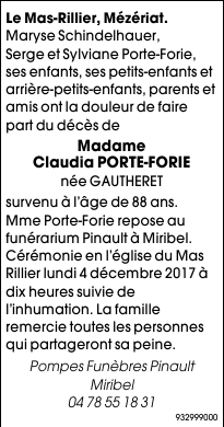 Madame Claudia PORTE-FORIE née GAUTHERET