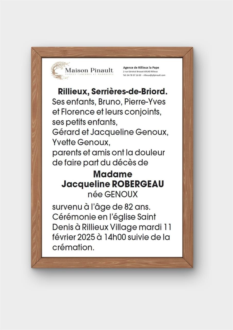 Madame Jacqueline ROBERGEAU née GENOUX