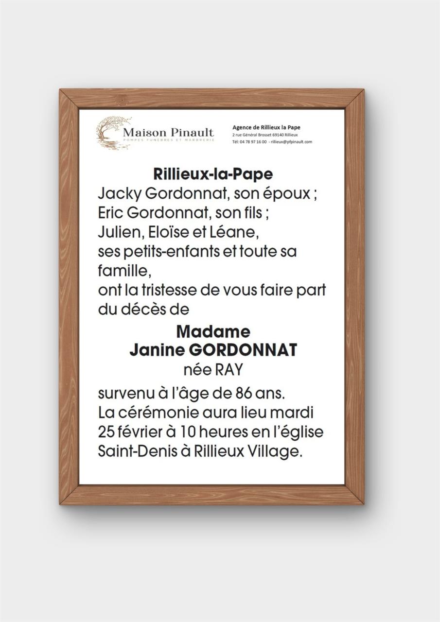 Epouse de Monsieur Jacky GORDONNAT
