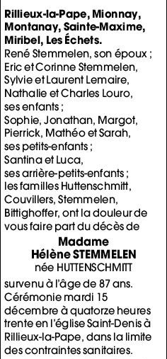 Madame Hélène STEMMELEN née HUTTENSCHMITT