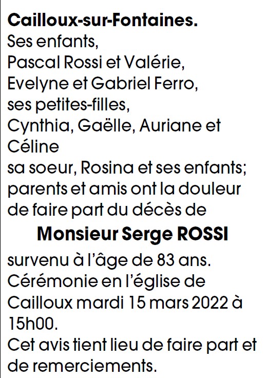 Veuf de Madame Monique ROSSI