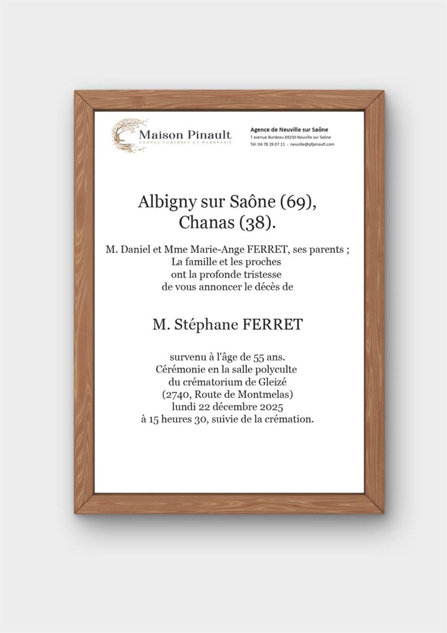 Décédé à Albigny-sur-Saône (69250, France) le lundi 15 décembre 2025 à l'âge de 55 ans