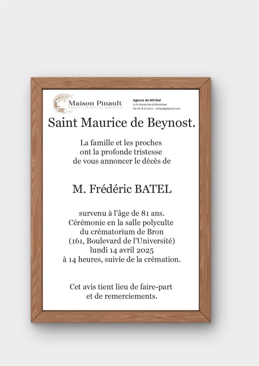 Décédé à Saint-Maurice-de-Beynost (01700, France) le jeudi 3 avril 2025 à l'âge de 81 ans