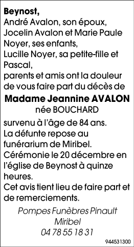 Madame Jeannine AVALON née BOUCHARD