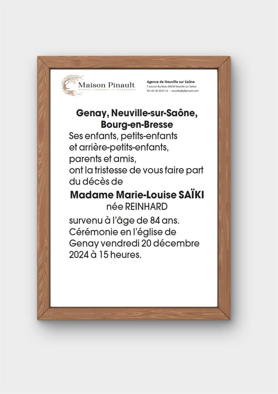 Décédée à Reyrieux (01600, France) le dimanche 15 décembre 2024 à l'âge de 84 ans